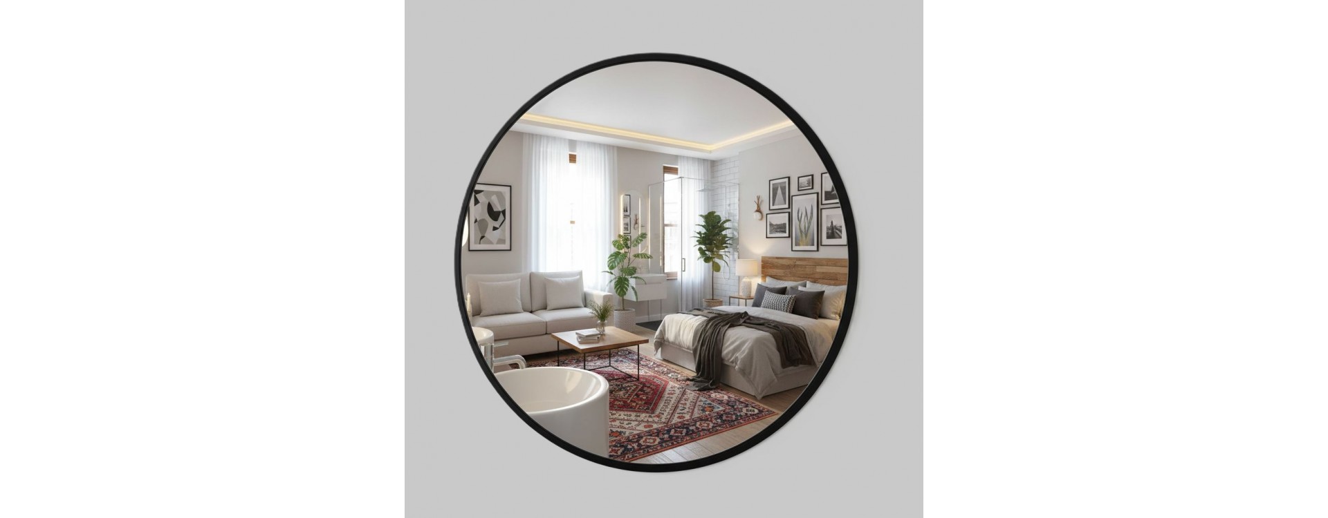 Aynamız, odanıza anında bir derinlik ve ferahlık hissi katarken, bulunduğu ortamın ışığını yansıtarak daha aydınlık bir ambiyans oluşturur. İnce ve zarif dairesel formu, minimalist ve modern dekorasyon anlayışını yansıtır.