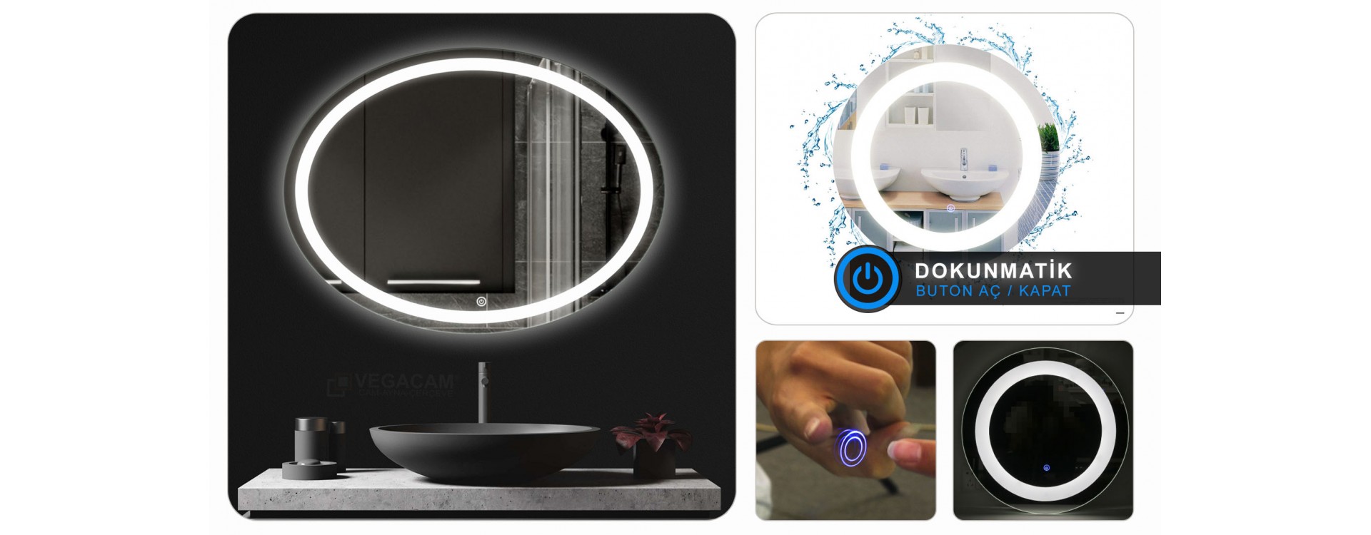 VEGALED3002 Ledli elips dekoratif aynalarımız lavabo, banyo, salon, antre,...